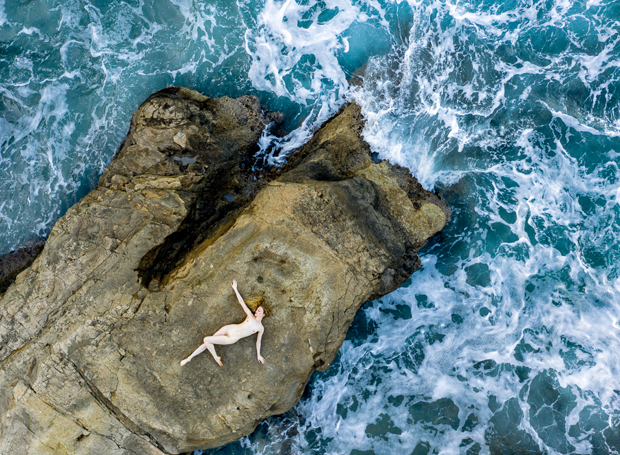 I enjoy trying to take a different viewpoint when photographing models, whether it be by lying on the floor, shooting from above with my monopod, or using my drone to get a view that you never really see as a person unless you are in flight somehow.