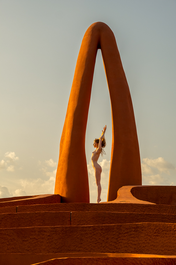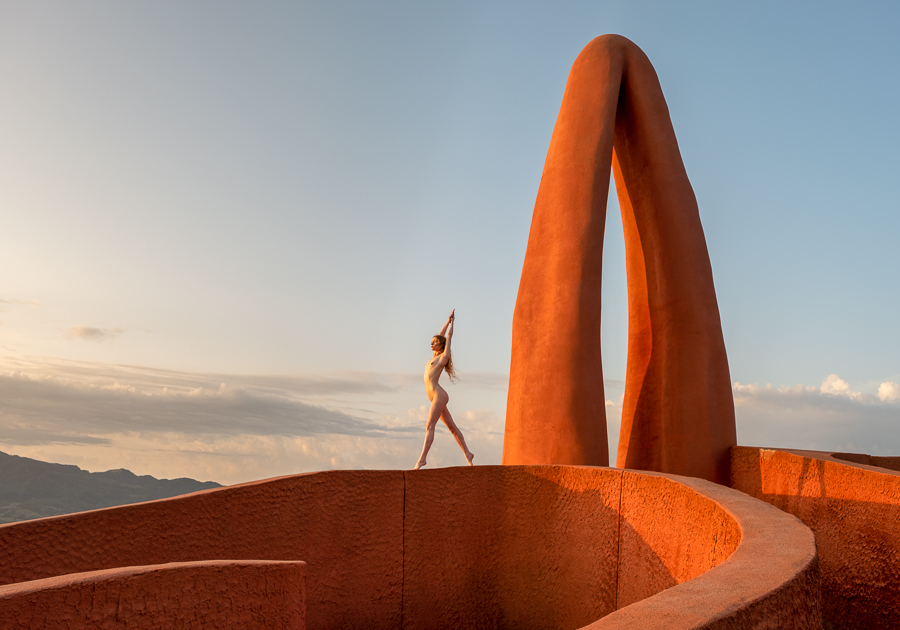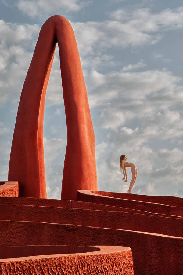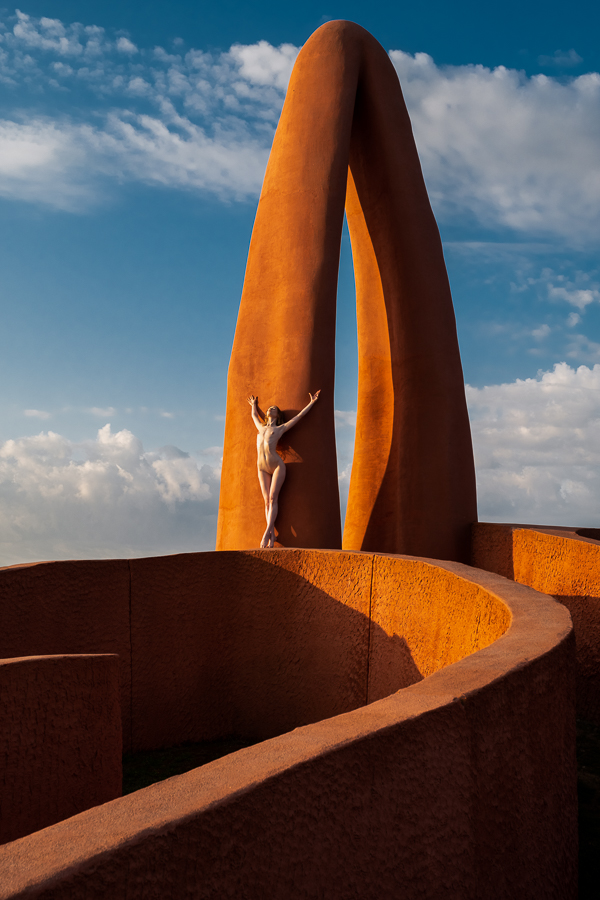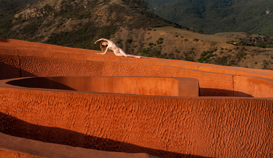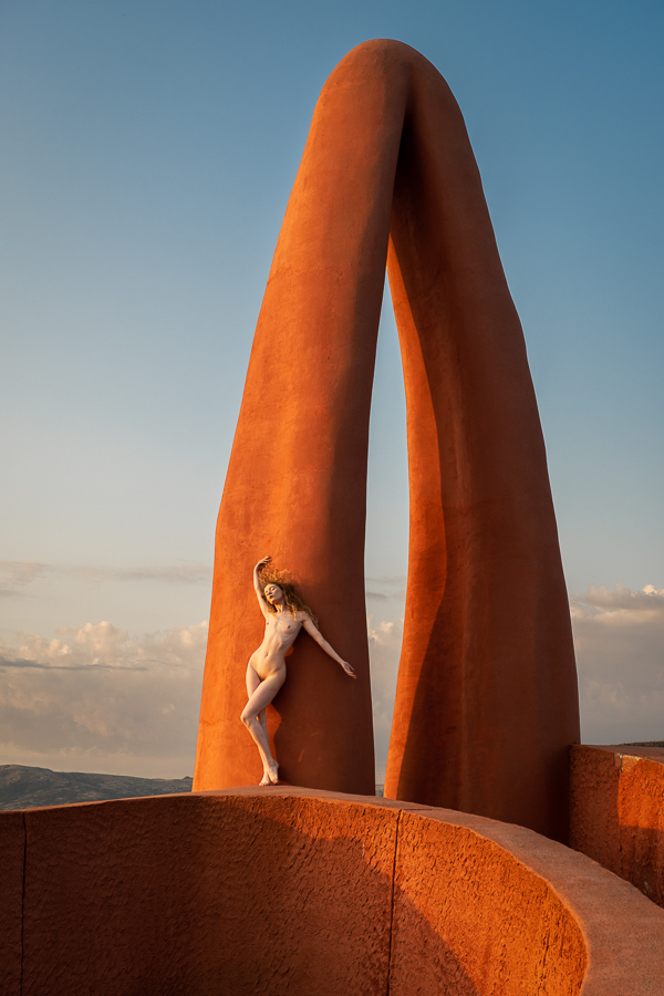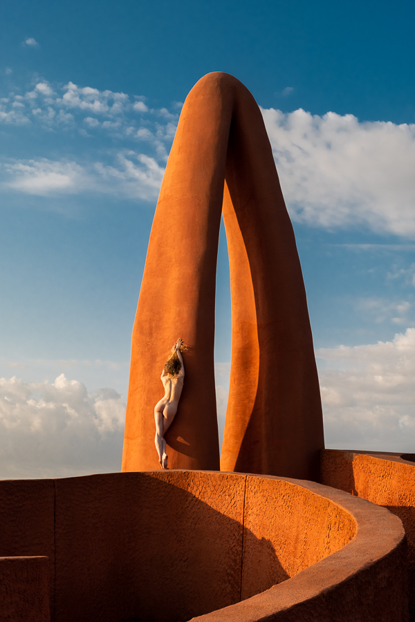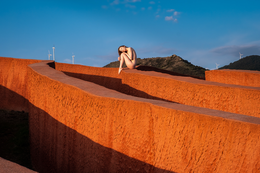I regularly get people asking me whether some of my images are composites, which I take as a compliment, as they do not believe that anybody could get a model to that location, with that light. So I present to you Lulu standing on a huge orange maze up in the mountains that we found. Beyond my imagination, but not beyond my ability to create in reality!