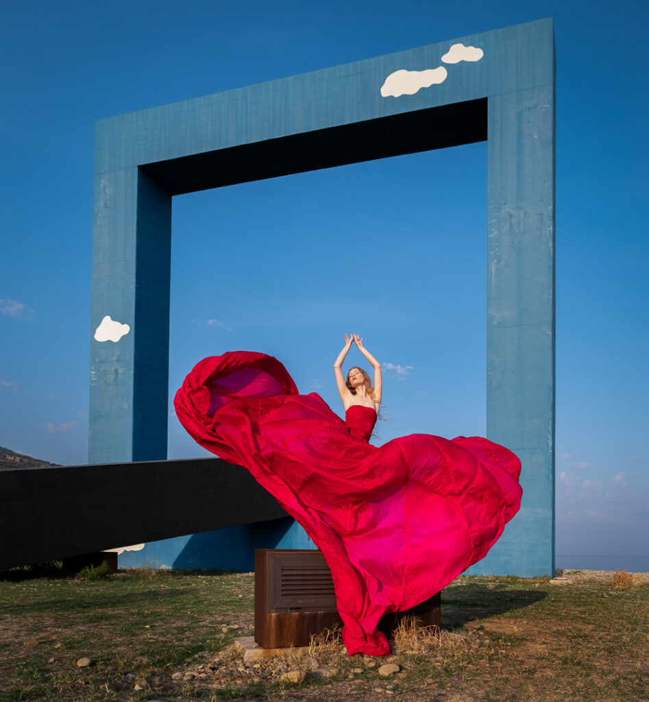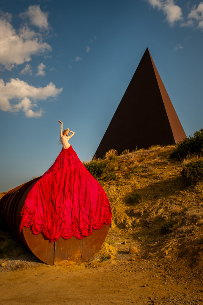 We visited a sculpture trail, although the various sculptures were quite a few kilometres apart, Alice Andrew’s parachute dress worked well with quite a few of them.
