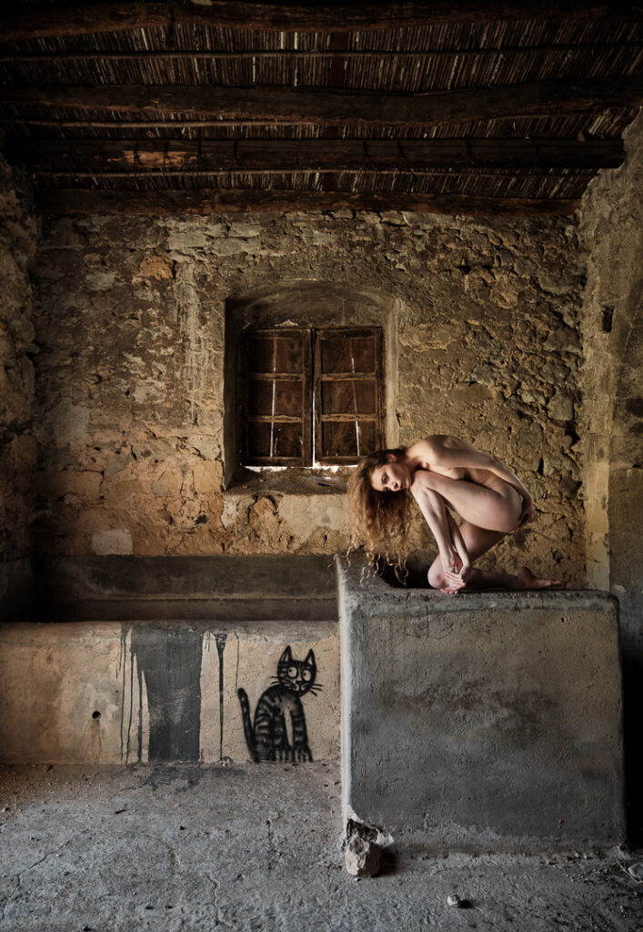 We also visited an abandoned village. I spent ages cloning out the graffiti of a cat, before deciding I actually quite liked it and reversing all of my hard work!