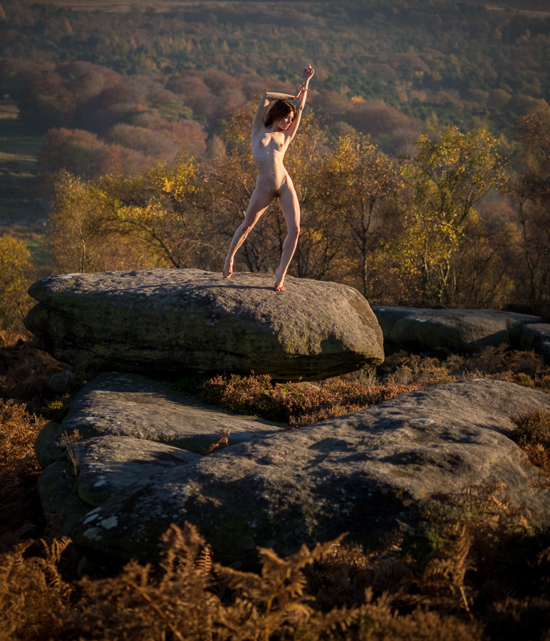 We had hoped to get lots of shots on the rocks in the Peak District, but unfortunately we were not the only ones that had seen the weather forecast, and the place was teeming with people trying to enjoy the last nice weekend before the Winter set in. Also given the short notice of the shoot I hadn’t been able to do as much research on locations as I normally do for shoots. We did find a relatively sheltered area and managed some shots on the rocks, but with the clear skies the light was a little more contrastier than I would have liked.