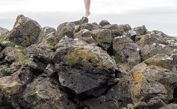 We would never do a shot that was dangerous, and we walk away from quite a few shots that look great but where we consider the risks too great. However, with the magic of composition and shooting from the right angle the shots can look precarious. Here’s a close up of her feet, so you can see there’s lots of rocks between her and the edge.