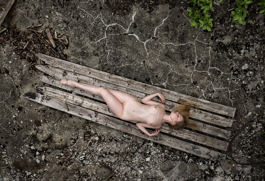 I seek out interesting man-made and natural environments, so that I may integrate or juxtapose my model with the surroundings to showcase her beautiful poses and the natural light falling on her body.