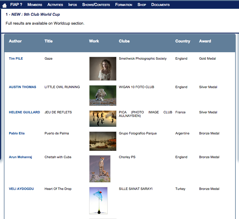 Judging is obviously very subjective, and is the opinion on that particular day of, in this case, the three photographers selected to judge, but it still amazes me how they can look through 3340 images of a huge variety of subjects including portraits, landscapes, wildlife, sport, composite images, still life, reportage, and other subjects too numerous to mention, and pick the award winners. The image Gaze has now won gold on quite a number of occasions, so there is definitely something special in the image that makes different panels of judges look at it and place it first.
