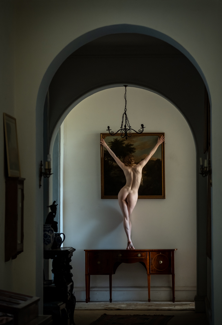 Another fine set of images – I particularly like the Y-shape pose where Lulu appears to be holding up the large square painting, all framed by that archway.
