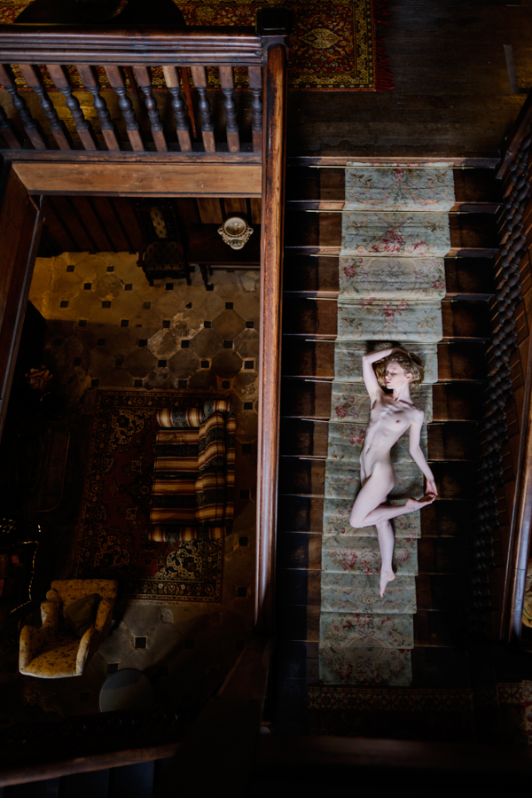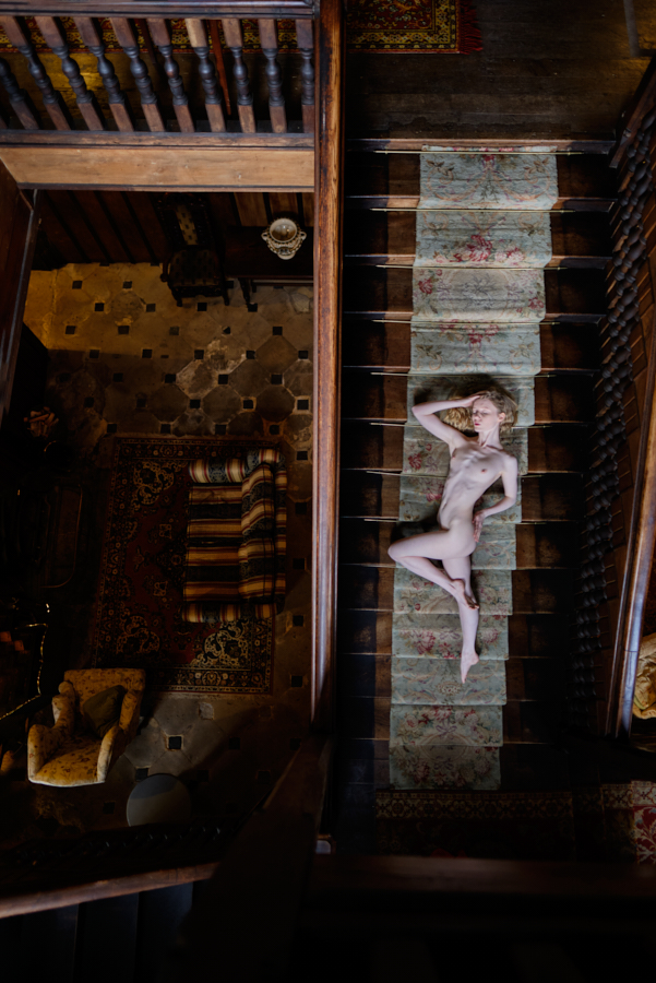 Shooting in a grand house can give you some great opportunities for images, especially where the house has some nice corridors or staircases, as they can give some interesting compositions. A nearby window is also useful for lighting.