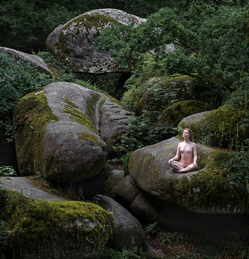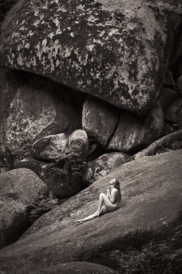 We found a location with a great pile of boulders, that were just hurled around by some seismic activity many thousands of years ago. In one of them there was a great indent that just looked like where a model belonged. For this contemplative pose I felt the square crop worked best.