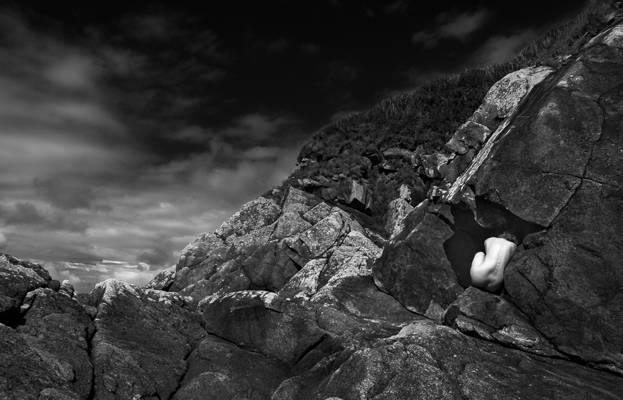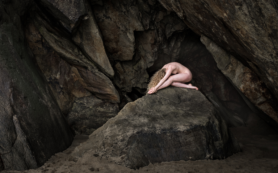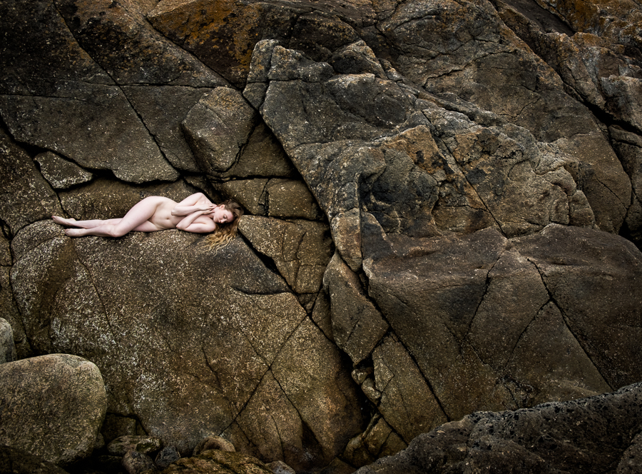 Lulu rocks, well she does but that’s by the by, as this post is about my love of using rocks and contrasting their ruggedness, textures, colours and shapes with the smoothness of the human form. Rocks are super platforms to use with models. They come in all shapes, sizes and colours, giving experienced location models such as the wonderful Lulu Lockhart the opportunity to use them as a playground.