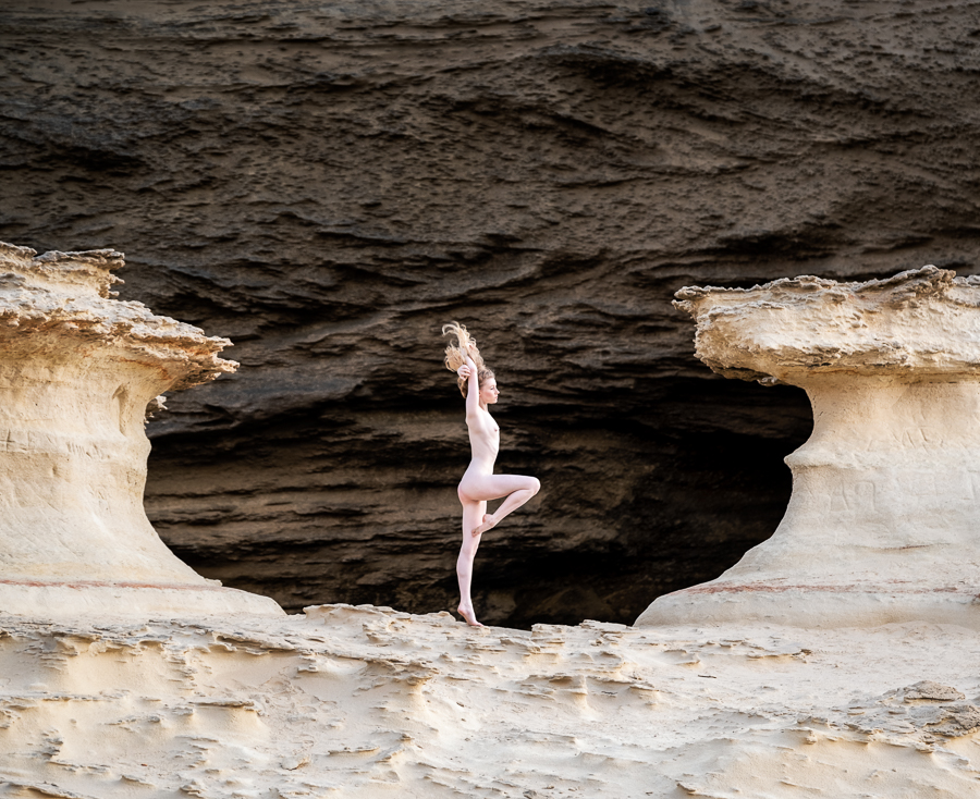 This sandstone structure provided a natural frame, and as it was early in the morning and the background didn’t yet have light on it making her stand out even more.