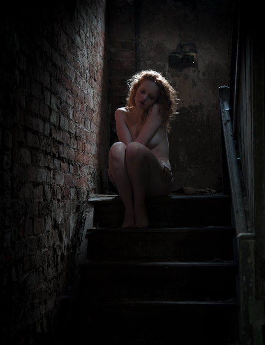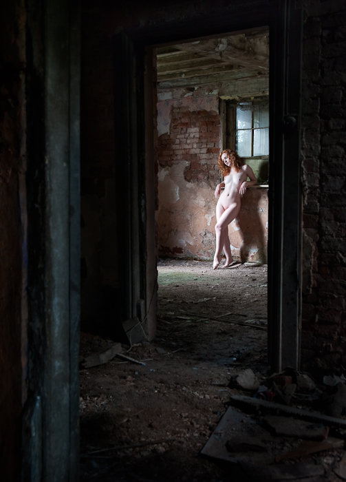 This was an amazing room with good light coming from a window on the left, and the super colours of the bricks and plaster which went so well with Holly’s skin tones and hair. I just love the beauty of Holly against the decay of the walls and window.