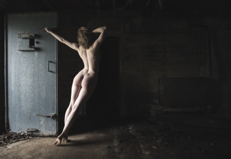 We also visited a bunker from the last World War, and I like using places that were once used for violence for showing off human beauty. This was the very heavy door, and I love how Lulu stands out against the almost black background.