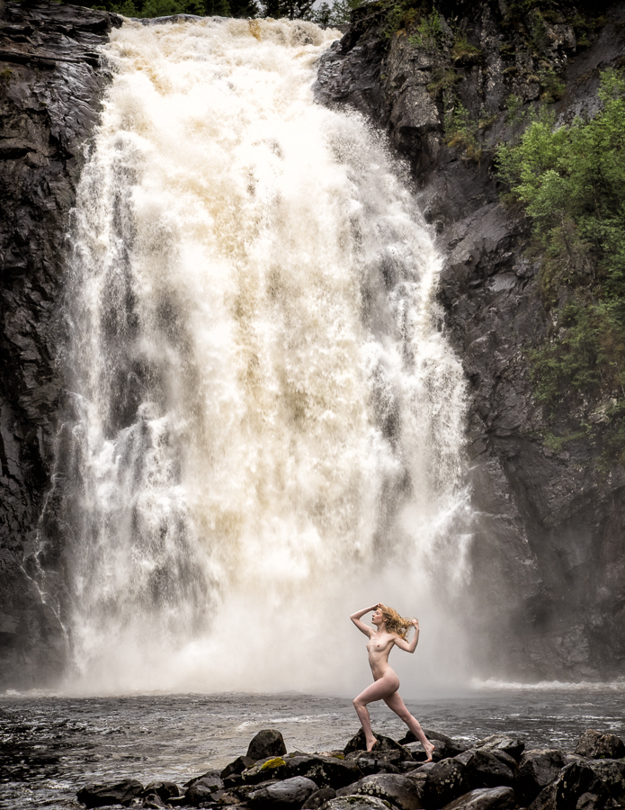 Norway has great natural beauty, including this magnificent waterfall. Håkon and I were standing quite a distance from it, and were cold and wet. Lulu was 2/3 closer, so was rather colder and wetter, but we kept her out there for the absolute minimum time. I hope she feels that the discomfort was worth it for the images.