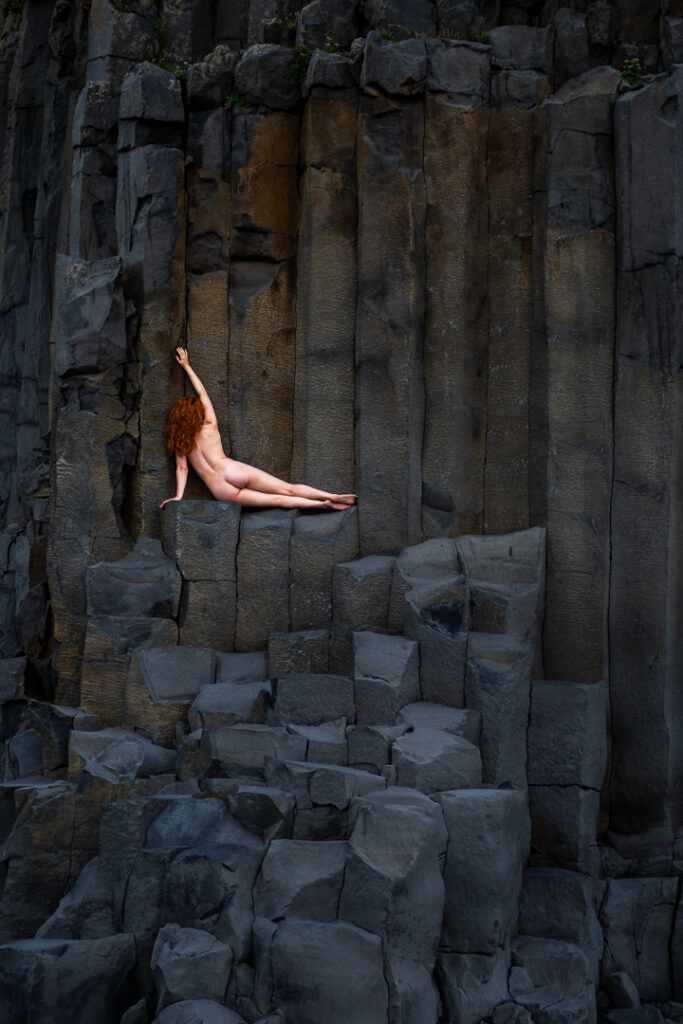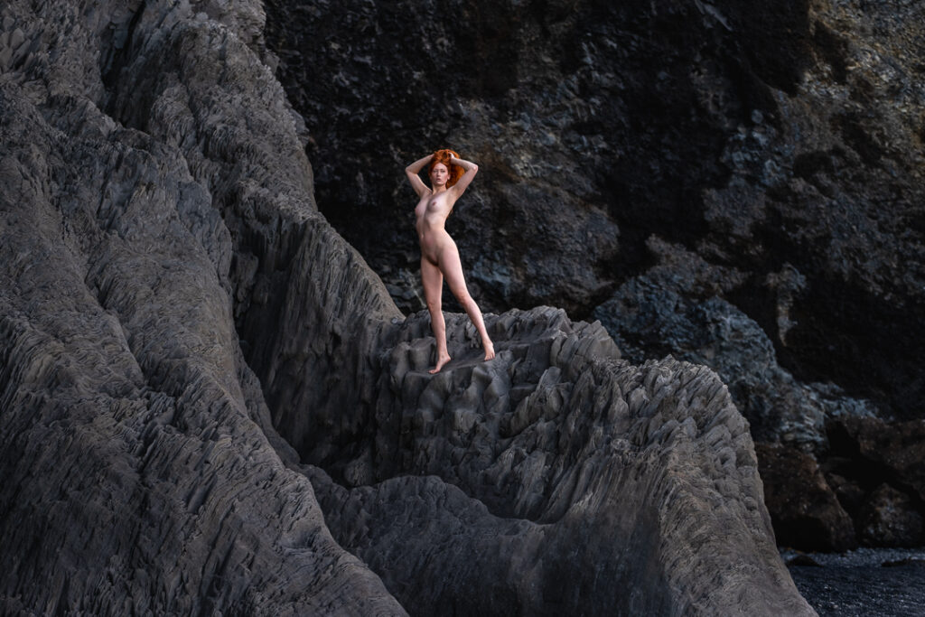 Outstanding. The fiery red hair against the dark and grey background is striking. I probably would have edited her paler so the red is the main source of colour but the way you have let her skin retain it’s warm tones feels like the her whole body is aglow and I love it.
