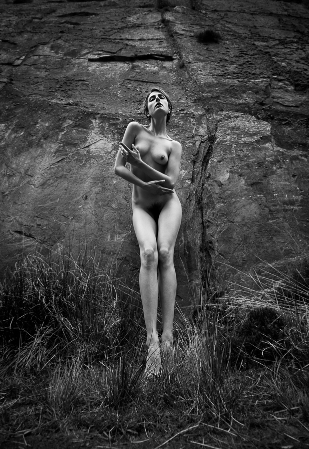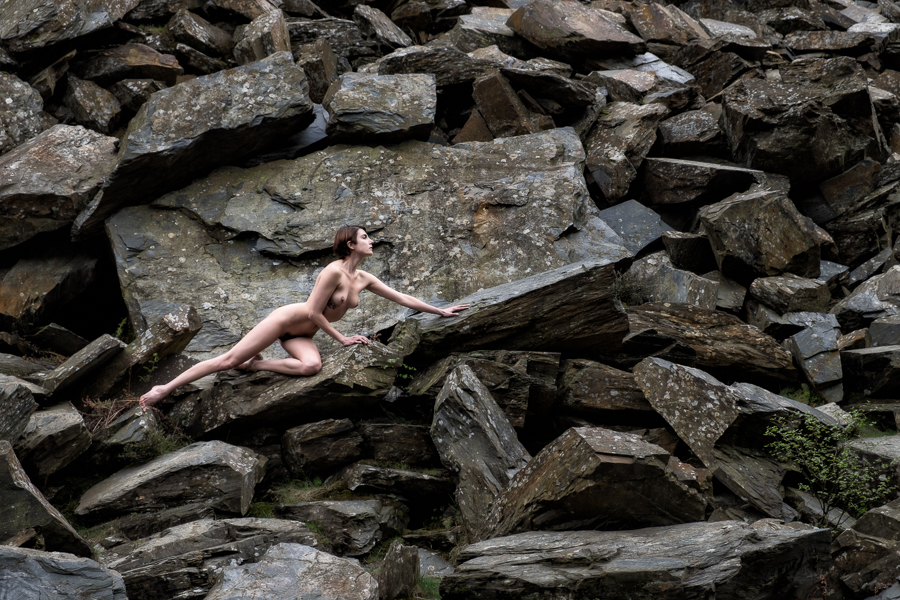 I like using rocks on location, as they provide models something to work with for their poses, so I took Roarie to a location with an abundance of different types of rocks, and was not disappointed.