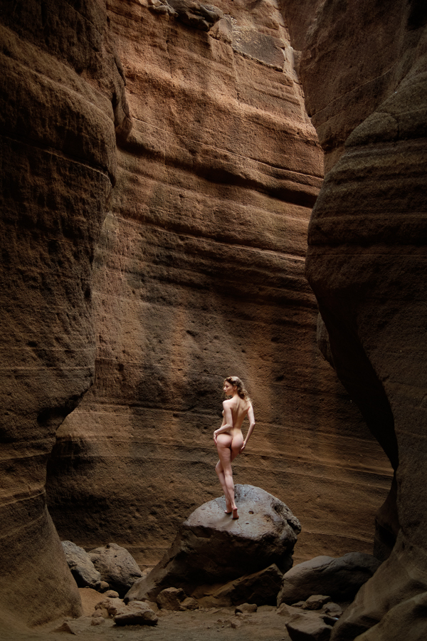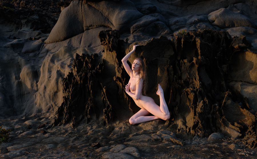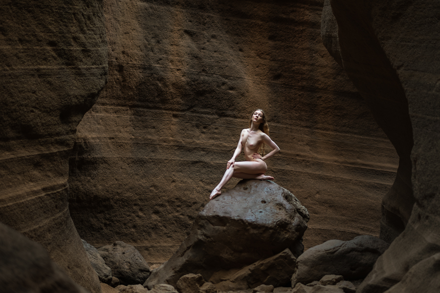 It’s all about contrasts, the hardness of rocks against the softness of Lulu’s skin, and the textures of the rock against the smoothness of Lulu’s skin, but the most important thing for me is that it provides a great platform for Lulu to show off her posing ability. I find with all models that the more you give them to work with the better will be their posing.