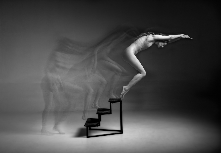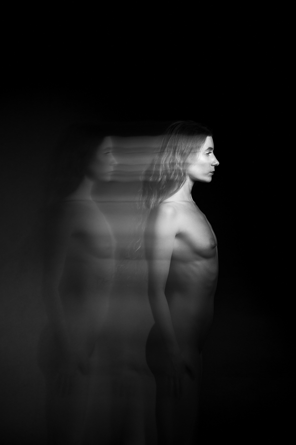 I’ll start with some that are a little different from our normal styles, monochrome and flash, and not just normal flash but dragging the shutter with rear/2nd curtain sync, Lulu had 3 seconds to move about and make the ghostly bit of the image, and then needs to get into a final pose for when the flash fires. I think she did extremely well.