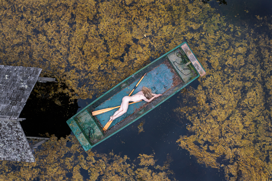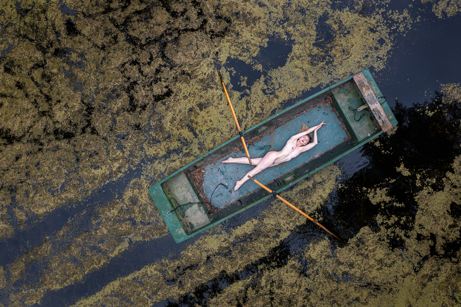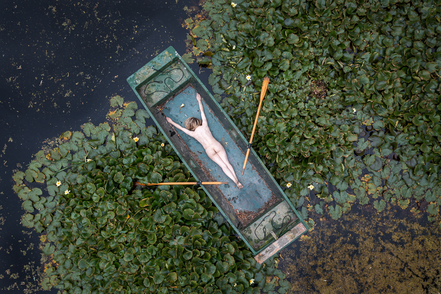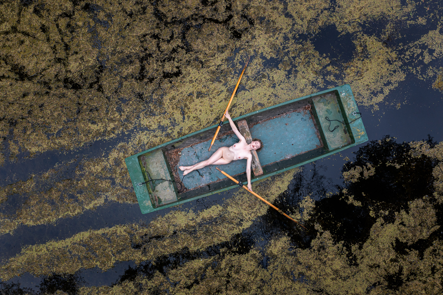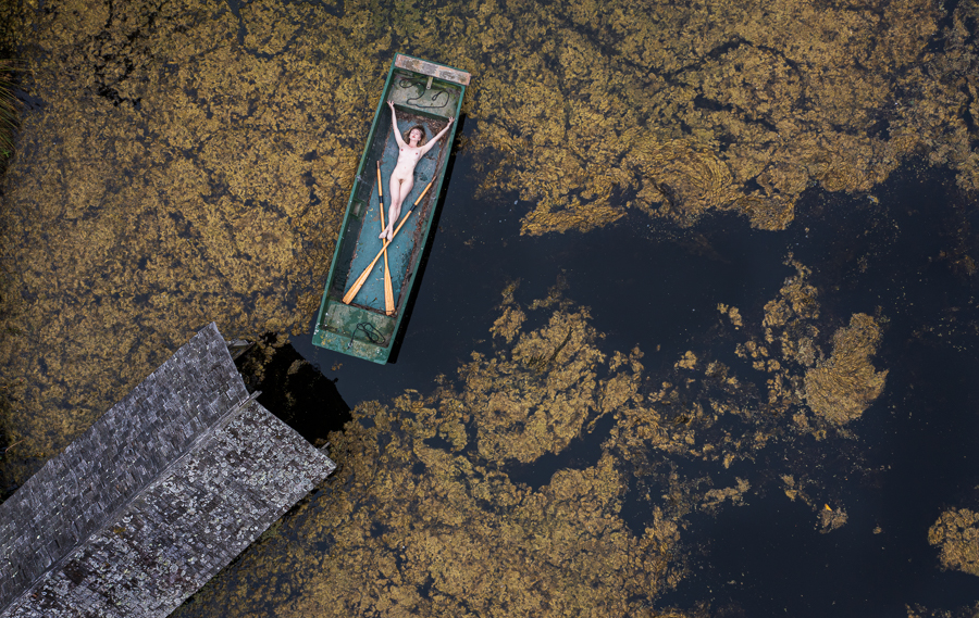 I was really pleased to recently shoot with the lovely Nicole Rayner in the Secret Garden. Nicole is very creative and enthusiastic, and had the great idea of using a boat that was there, with me photographing her using my drone.