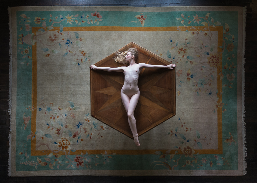 For this image of the lovely Lulu Lockhart I immediately knew the type of shot I wanted as soon as we walked into the room, and could see the overall composition in my head. We tried various poses where Lulu was within the table bounds, and reviewing the images on the back of the camera we both liked them, but I felt a bigger, bolder pose was needed, and fortunately her arms were just long enough for this image which is my favourite from the set as she fills the table and the light is just gorgeous.