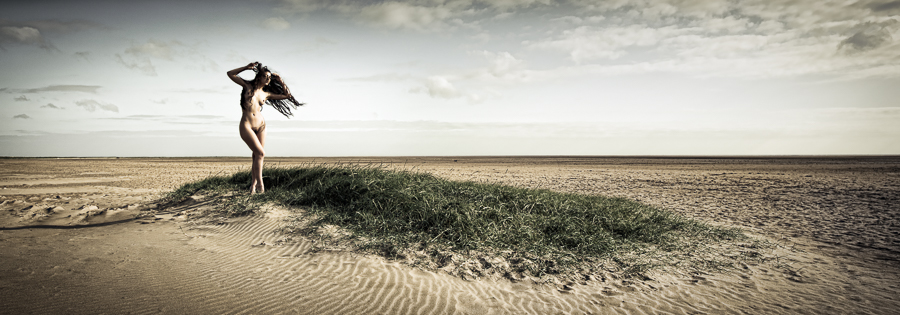 For this image with the superb Madame Bink we were walking along a beach when the wind came up and some beautiful morning light came through the clouds. Bink’s hair is very long and quite heavy, so I am sure you can imagine how windy it was to blow her hair up like this. The light was only going to last for a very short period so I quickly sorted out my shooting position and composition and told her where to stand, she then asked how I wanted her to pose, I still remember my reply “pose, just pose”, and pose she certainly did as this is one of my all time personal favourite images.