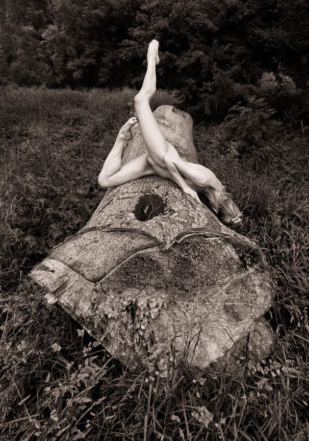 I like giving models platforms to work with, sometimes these platforms are not the easiest thing in the world to balance on, so often it’s a matter of finding a good composition, and then working with the model to see what poses are physically possible, as I did with this image where the very understanding Katy was just about able to balance on this log.